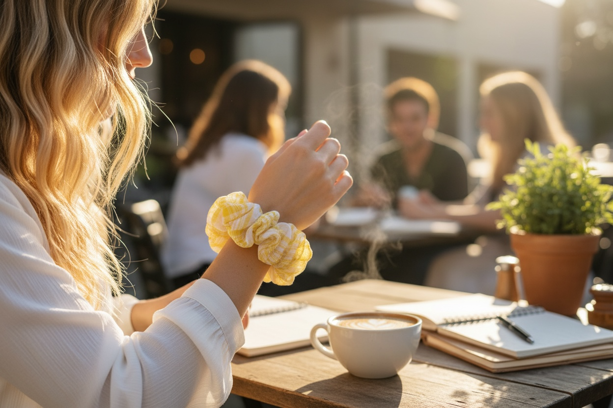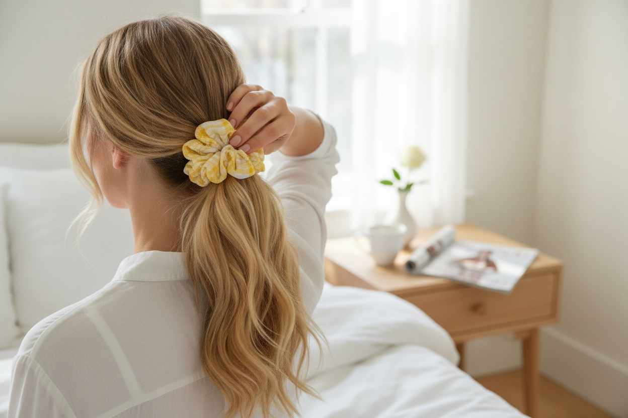 💛 Un scrunchie maxi, ligero y vibrante que ilumina cualquier peinado.